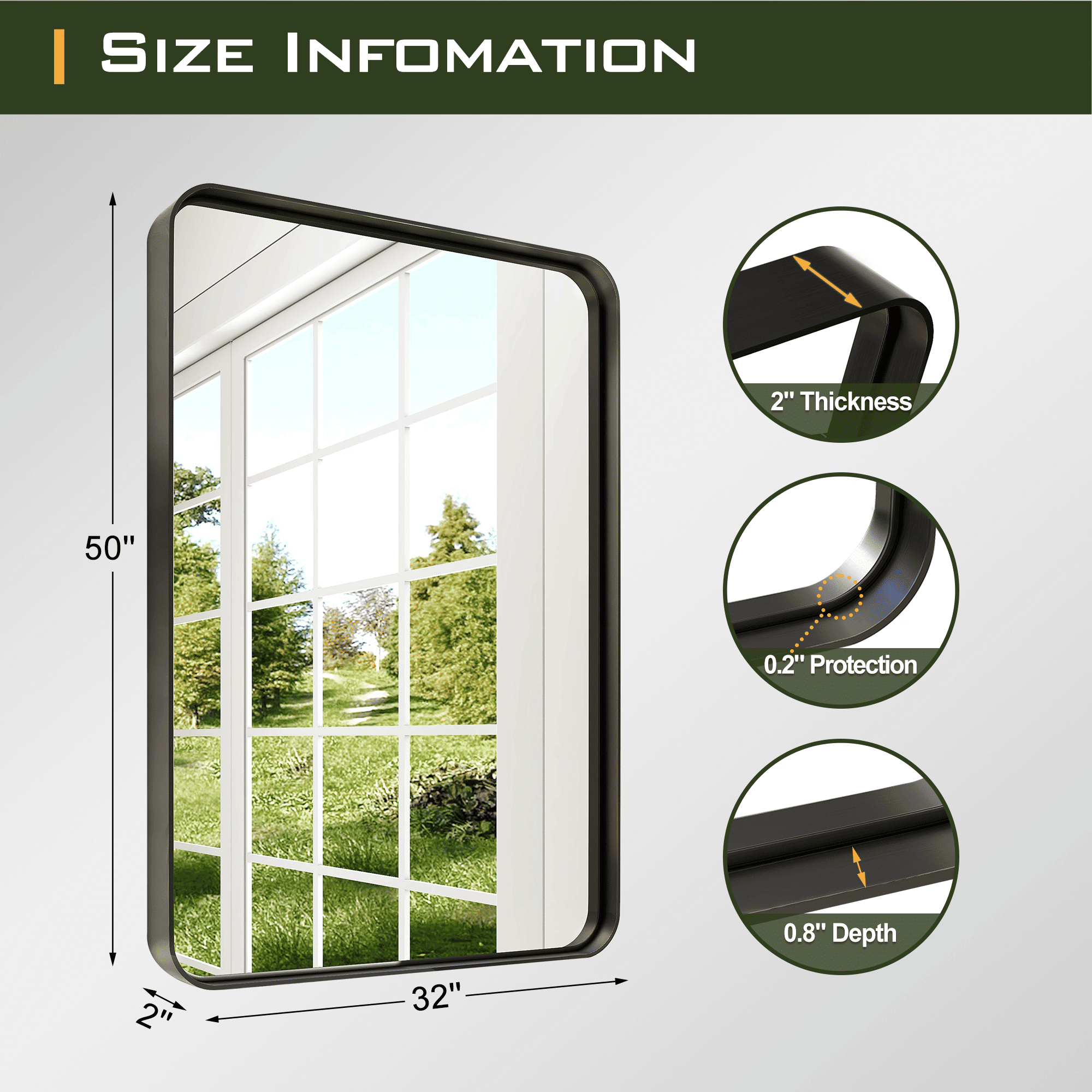 50"*32"Aluminum Alloy Rounded Corners Rectangular Lacquered Black Hanging Mirror Decorative Bathroom Mirror with Elegant Scalloped Design(Deep Mirror)