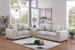 Create a warm and inviting atmosphere with these timeless pieces. Wrapped in a neutral color scheme and crafted from soft corduroy material, these sets bring a touch of warmth to any space. With identical style for both the sofa and loveseat, these sets are designed for harmony in your living area. The square arms and low-profile legs add a modern touch, while the thick back and seat cushions provide the ultimate relaxation experience. Each set comes complete with 2 matching throw pillows, perfectly complementing the overall design.