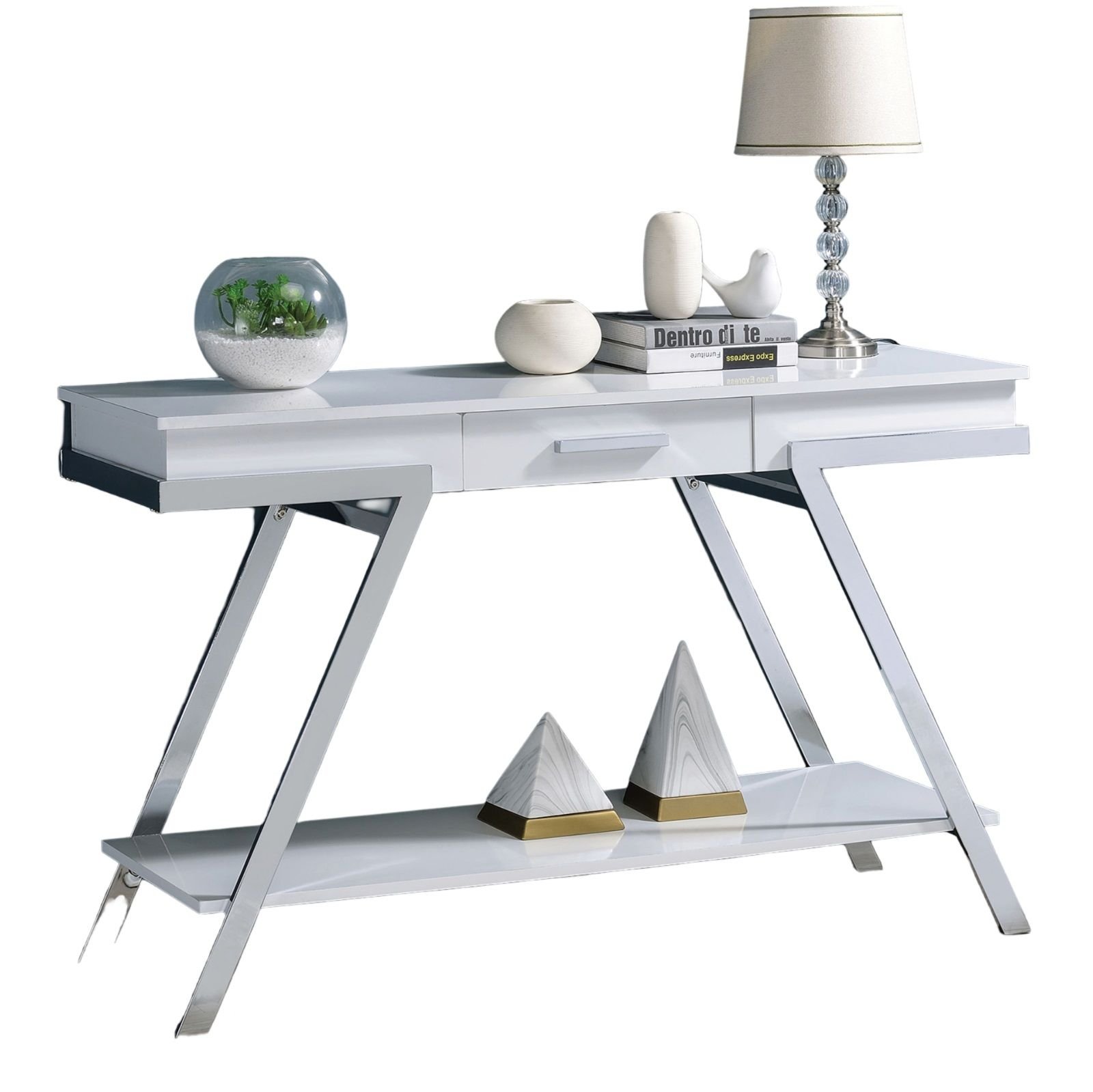 Home > Contemporary Style White 1pc Sofa Table High Gloss Finish Chrome Frame Console Table Gorgeous Living Room Furniture