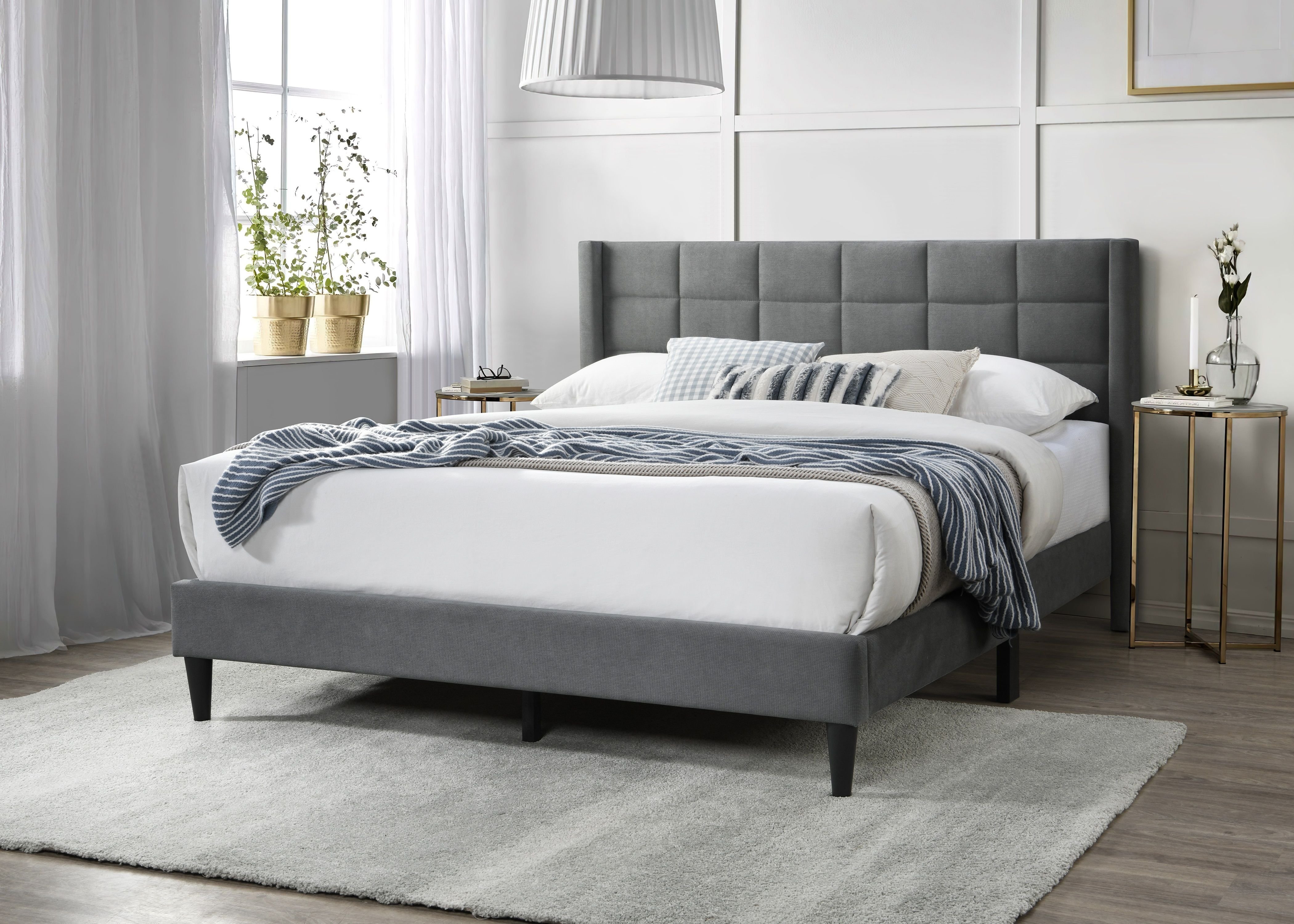 Product Description:-This bed combines style and functionality to create the perfect centerpiece for any Modern space. With its thoughtful construction and attention to detail, this Queen bed offers both comfort and style. It's an ideal choice for those looking to enhance their bedroom with a modern and practical piece of furniture. Designed with support legs and a robust platform base, this bed provides excellent stability without needing a box spring. The footboard ensures a streamlined look, completing the bed's clean design. The headboard showcases a sleek, stitched square pattern that adds a touch of sophistication and complements various décor styles. This unique design element adds visual interest and a touch of artistry to your bedroom. The soft brushed linen material adds a cozy feel, making it an inviting spot to relax and unwind.This item features Brushed Linen fabric upholstery designed to highlight the texture of the fabric while conserving smoothness. Combine modern design with comfort and add a dimensional feel to your space with the square tufted design of the headboard. Select a combination of the fully upholstered bed design with this dark shade of charcoal gray color to contribute to the sophisticated and modern interior style of your home.Enjoy convenience and simplicity from a platform bed design that eliminates the need for a box spring. Product Dimensions:-Queen Size Bed :- HB 41" H / FB 12" H,Listing Includes :- 1pc Queen Size Bed Only.Dresser, Mirror, Nightstands And Chest - Not Included.Simple Assembly Requires:Product Features:-•Modern Style•Gray Color•Brushed Linen Fabric•Platform Bed•Master Bedroom Furniture