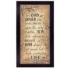 For God So Loved By artist Gail Eads. John 3:16 framed in a decorative black framed print 10"x18" of this famous Bible verse. Prints are UV coated (glass is not needed) and arrives ready to hang.•TEXTURED ARTWORK with a 'rolled on' acid-free acrylic coating to create a canvas painting effect.•UV PROTECTANT COATING protects artwork from fading. No glass is necessary.• MOULDING adds natural beauty to the framed art. Frame is keyholed for the easy hanging.•THIS FINE HOME DECOR piece made in the USA by Woman Owned Business (WBE) is a perfect gift for a friend or relative.