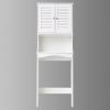 2.Shutter-Style Doors – Classic shutter-style doors add a touch of elegance to this tall over-the-toilet storage cabinet, blending style and function.