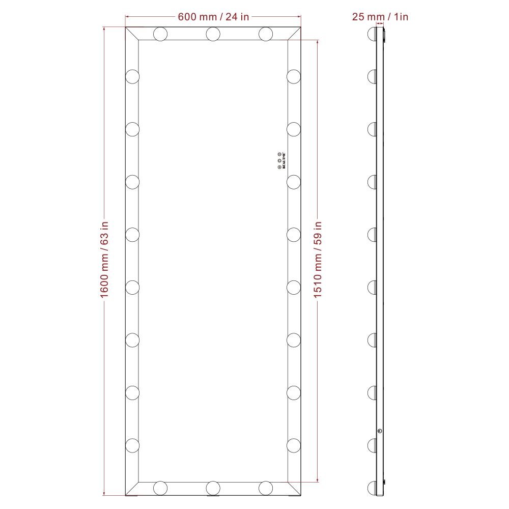 Full Length Mirror with Lights -The full body mirror size is 63 x 24 x 1 inch, equipped with 22 LED bulbs, which can provide a full range of viewing angles and bright light, allowing you to see yourself more clearly and comprehensively.