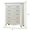 Introducing our enchanting chest, a captivating addition to our romantic-era inspired bedroom set. Blending traditional charm with modern sophistication, this chest is meticulously designed to elevate your bedroom decor with its exquisite details and timeless elegance. Crafted with a matching White finish, this chest exudes a sense of refinement and luxury. Each drawer is adorned with mirror trimmings, casting a dazzling glow and adding a touch of opulence to its design. The combination of traditional craftsmanship and contemporary accents makes this chest a stunning statement piece that effortlessly enhances any bedroom setting.