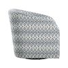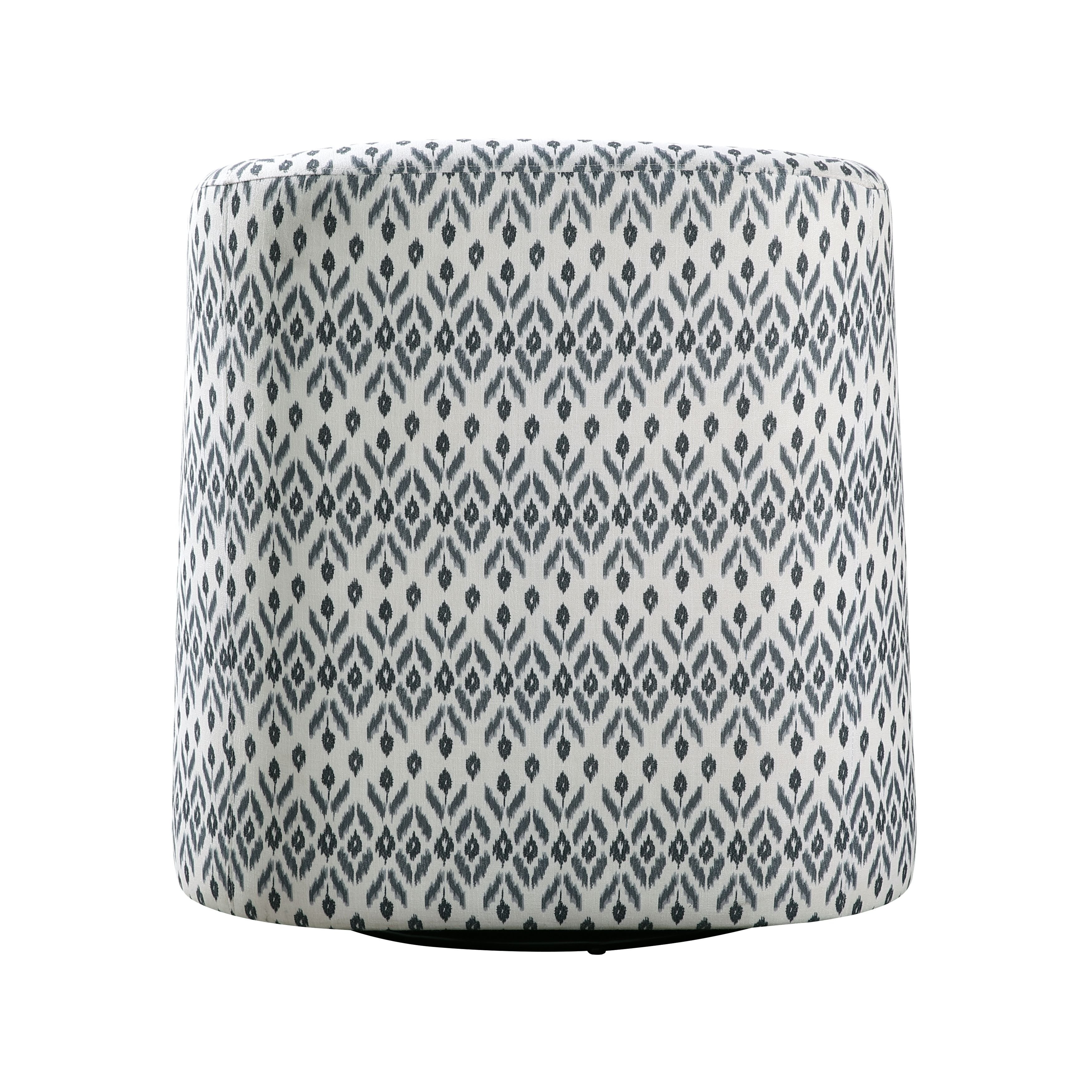 Add style and versatility to your living space with this eye-catching Augustine Swivel Chair, featuring a striking blue and white tribal pattern textured fabric upholstery. Designed for both comfort and flair, the chair boasts a 360-degree swivel, allowing you to effortlessly rotate and enjoy your surroundings from any angle. Perfect for living rooms, reading nooks, or even home offices, this chair combines bold design with functional comfort to enhance any space.PRODUCT DIMENSIONS: Overall Dimension: 28.5" x 32.5" x 32"HSeat Width: 21"Seat Depth: 22"Seat Height: 20.5"Arm height: 25"Arm width: 3.5"Doorway width: 25"Listing Includes: One Swivel Chair Only.Simple Assembly Require.