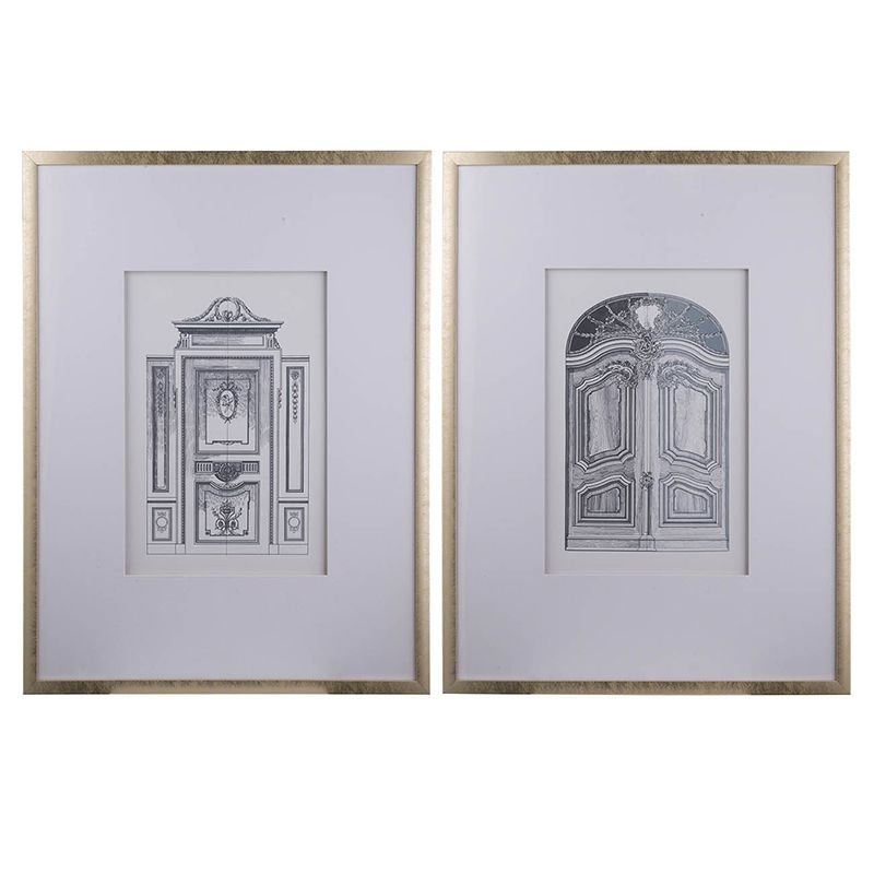 Display your love for classic architecture with this pair of pencil art prints. Each one features a different style of ornate door the intricate renderings present something new to notice with each glance. These would be perfect for a home library, office, or even an entryway.