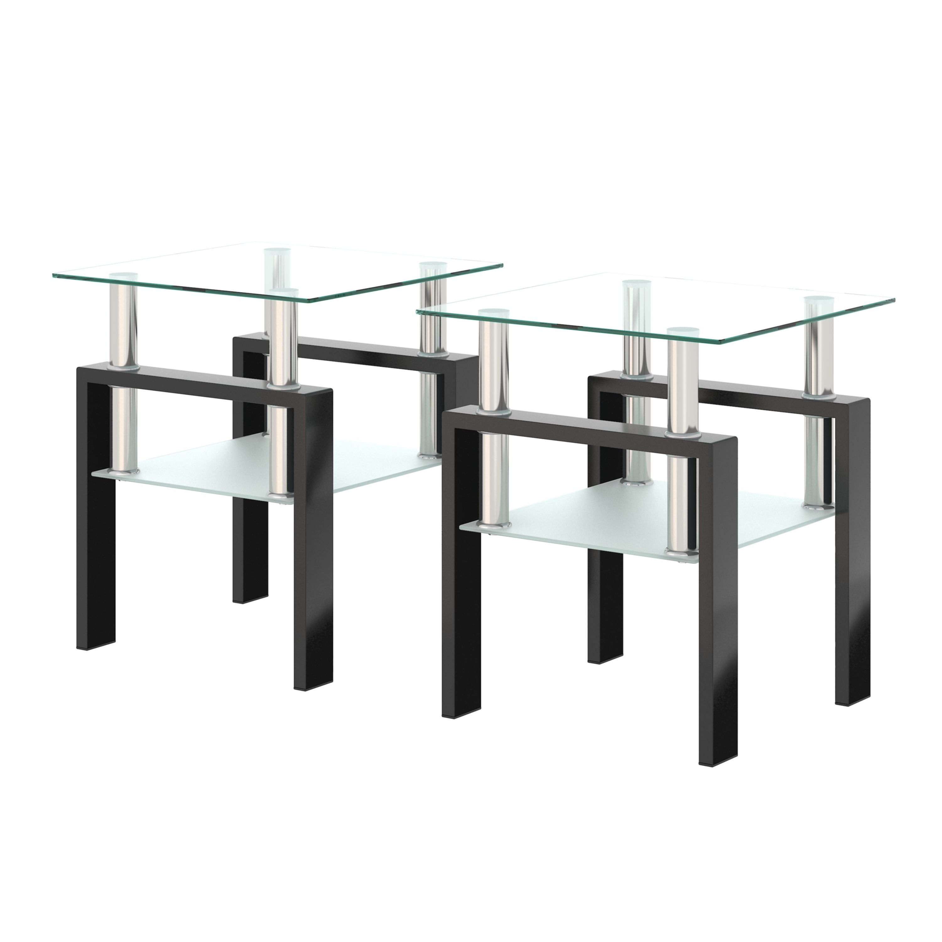 Home > Set of 2, Modern Tempered Glass Tea Table Coffee Table End Table, Square Table for Living Room, Transparent/Black