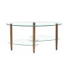 Home > Transparent Oval glass coffee table, modern table in living room Oak wood leg tea table 3-layer glass table
