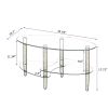 Modern design: The unique table is oval, full of classic and fashionable feel. The desktop is smooth and simple. Transparent and tempered glass will allow you show anything you want, such as your sofa, clear floor and beautiful carpet. The Smooth edges prevent you from getting hurt.The glass surface is smooth for daily cleaning.