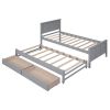 Twin Size Platform Bed with Trundle and Drawers, Gray