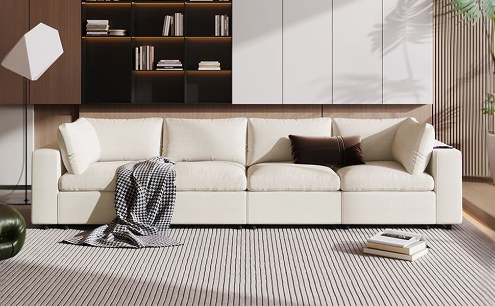 Modular Design: The beauty of our sofa lies in its modular construction, allowing you to mix and match the four individual modules to create your perfect seating arrangement. Whether you desire a spacious corner sofa or a compact loveseat, the possibilities are endless.