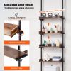 2.4 Flexible Adjustable Storage Shelves: The four wooden shelves with guardrails can be flexibly adjusted according to the height of your items, ensuring the organizer rack doesn't hit your head when using the toilet. Tall items can also be easily accommodated. Each shelf can hold up to 30 lbs (13.6 kg), keeping towels, shower gel, and other toiletries organized and preventing items from falling off. Adjustments can be made by sliding the bolts up and down and locking them in place.